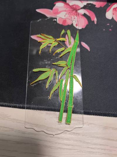 同学们围坐桌前,先在书签底板上用铅笔勾勒纹样,再用镊子将细软的铜丝弯折成花瓣、云纹等形状,蘸取粘丝胶固定;待胶干后,手持细针管将珐琅釉料填入丝框,从浅蓝到明黄,色彩在指尖晕开。“看似简单的填色,其实很考验耐心,一不小心就会溢出丝框。”杨蒙同学笑着展示自己的作品,书签上的竹叶纹样已经初见雏形。