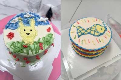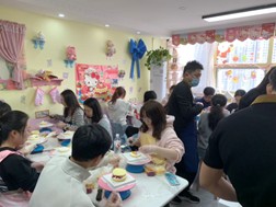 活动当日,工作人员详细了讲解蛋糕制作流程、奶油抹面技巧、图案绘制方法及设备安全注意事项,现场氛围温馨愉悦。在专业指导下,同学们以小组为单位动手制作蛋糕。大家分工协作、默契配合,认真完成胚体修整、奶油抹面、创意图案绘制等环节,用细腻奶油与缤纷装饰勾勒出各具特色的蛋糕作品,将巧思与心意融入其中。
