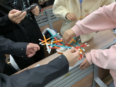 随后开展的是扣签游戏,各队需要在5分钟内稳固基础签并尽力搭建更多签,完成后保持整体稳定,以获得积分。队员们沉着配合、灵活应对,充分展现了团队的耐心、细致和沟通协调能力。