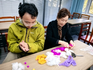 活动在欢声笑语与满满的成就感中圆满结束。同学们捧着自己亲手制作、独一无二的“心理伙伴”,与退休老师、新结识的朋友合影留念。这不仅是一次手工技能的习得,更是一堂关于自我关怀、人际联结与代际传承的生动课程,为环境系心理健康教育工作注入了更多温度与创意。