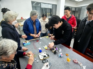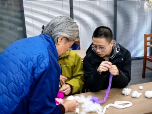 为关注学生心理健康,促进跨年级交流与朋辈支持,11月30日上午,环境科学与工程系(以下简称“环境系”)2022级与2025级本科班联合离退休干部工作处举办心理健康主题手工活动,特别邀请安徽省非物质文化遗产传承人马龙麟老师与学校离退休教师担任指导,两个班级的班主任姜迪、冯梅也到场参加。