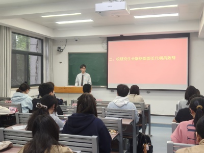 最后,蔡琛作总结讲话。他对系研究生会过去一年的工作成效给予充分肯定,勉励全体研究生代表在学术科研与社会实践中勇挑重担、争当表率。蔡琛强调,作为研究生代表,要心怀家国、立足科研,主动关注同学们在科研、学习、生活中的急难愁盼问题,积极搭建师生沟通桥梁,及时反映合理诉求,持续优化校园学习生活环境,为广大研究生成长成才保驾护航。