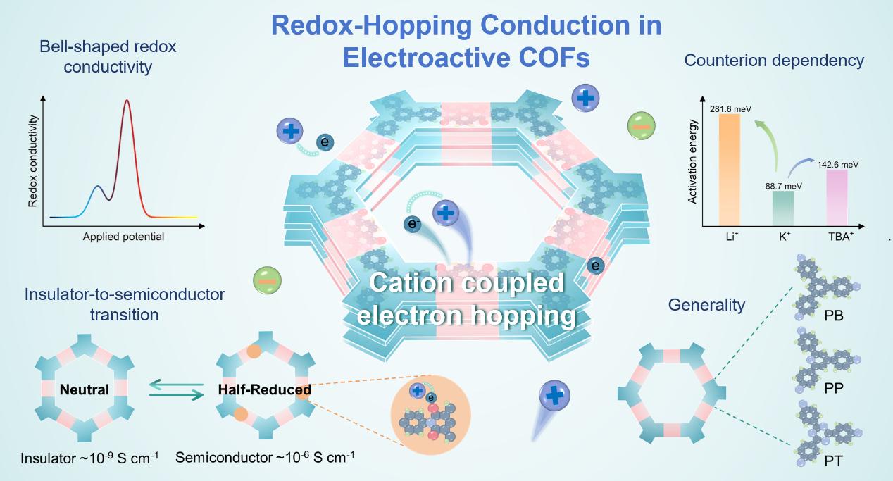 图 电活性COF电子氧化还原跳跃传输机制示意图