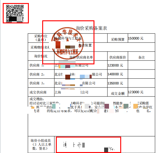 要求:校资产部门要求询价采购备案表为原件,不认可电子签名,需在统一电子签署平台完成电子签章+环境系用印申请完成盖章。