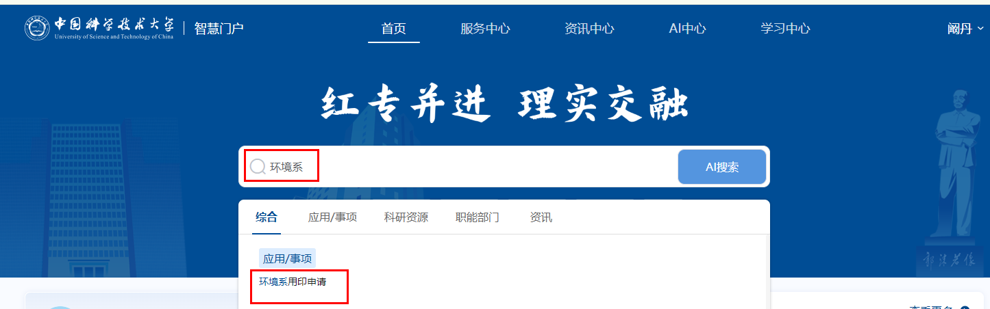 5、学校主页--智慧门户--统一身份认证登陆--搜索“环境系用印申请”