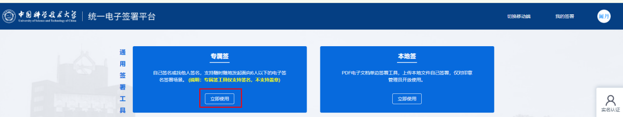中国科学技术大学统一电子签署平台(https://esign.ustc.edu.cn):