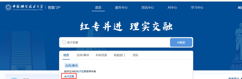 1、学校主页--智慧门户--统一身份认证登陆--搜索“电子签章”
